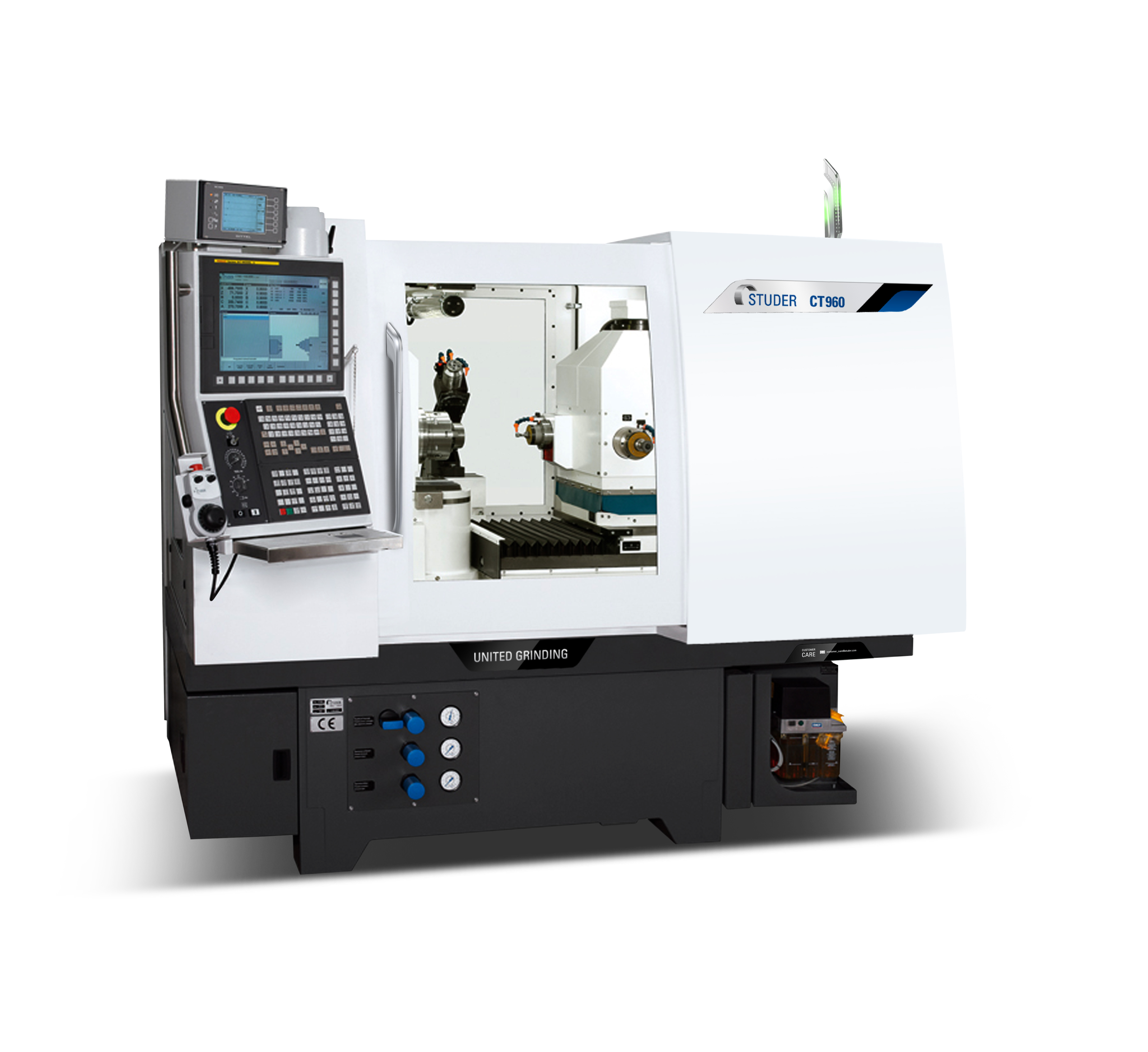 CT960是高端的万能内圆磨床,带有一根可偏转至91°的B轴和四主轴刀架。它适用于普通磨削任务以及刀具制造中的复杂工件磨削。其稳定性和机床的刚性使工件能够在抛光表面进行磨削。