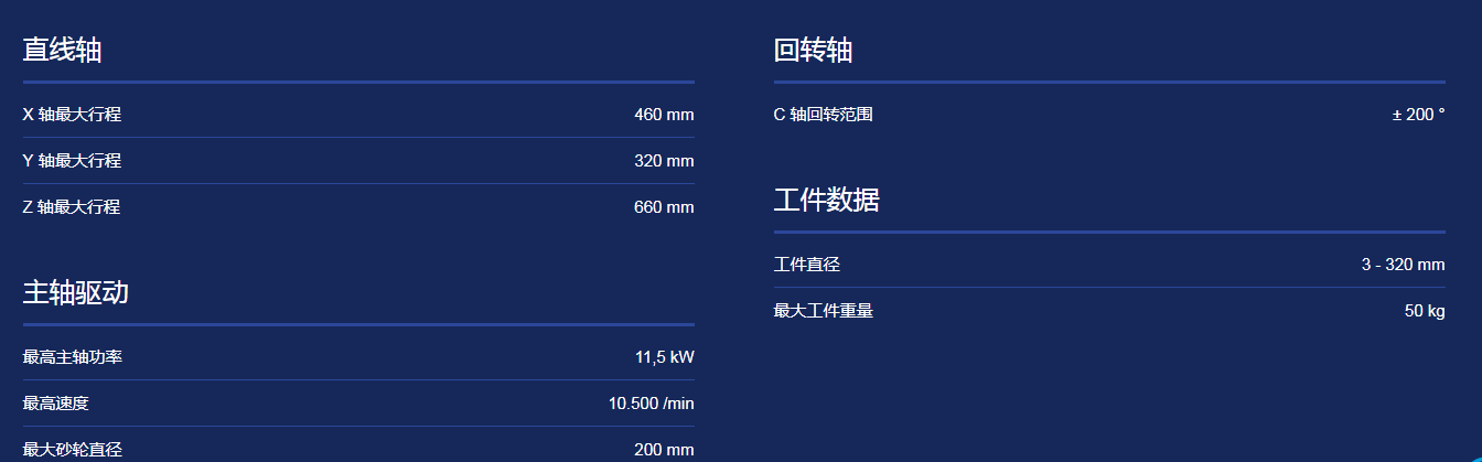 HELITRONIC RAPTOR 是有效磨削和修磨旋转 对称型刀具的理想入门级机器,而且占地面 积较小。适用于直径为 3 至 320 mm、含端面 加工的刀具长度最大为280 mm、单件重量最 大为 50 kg 的刀具。