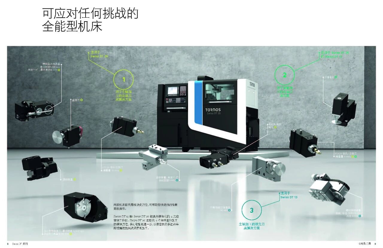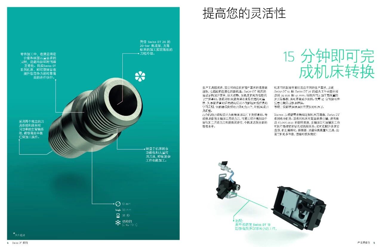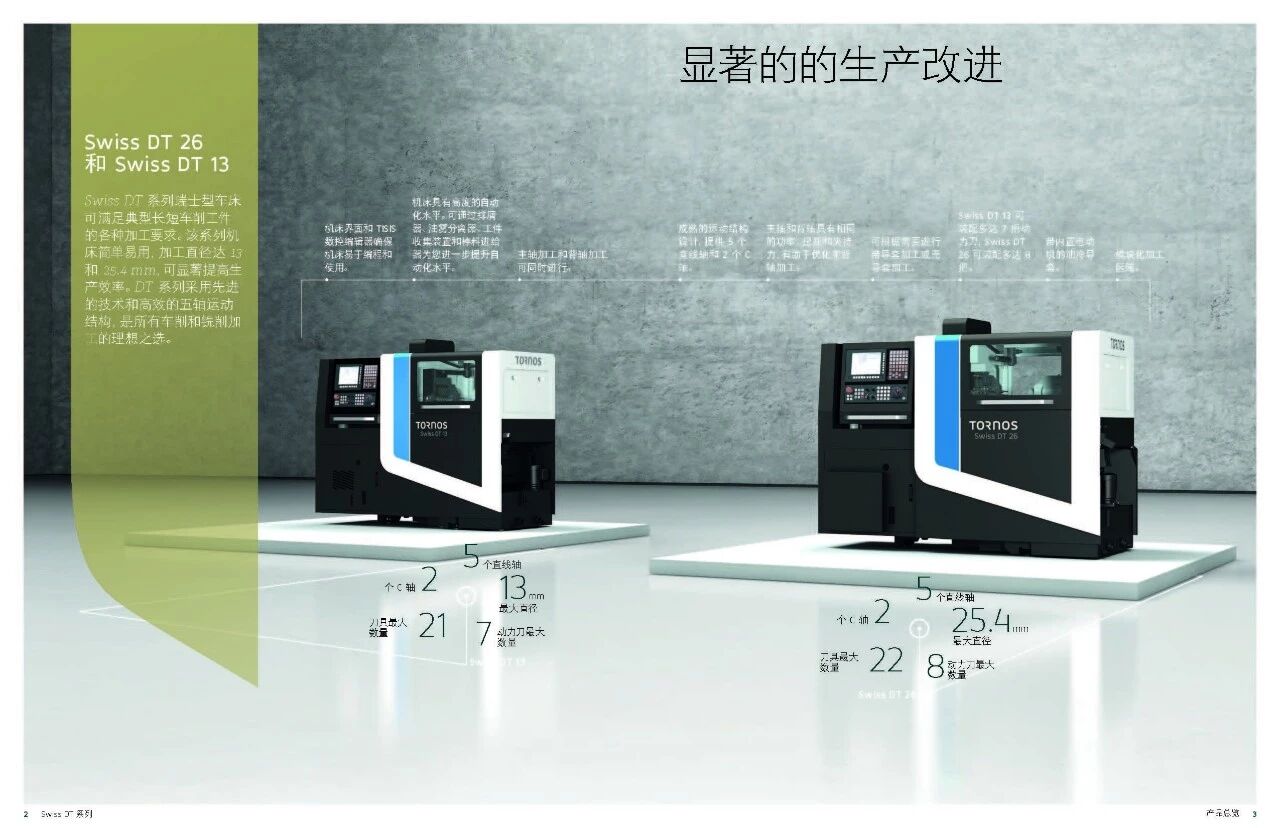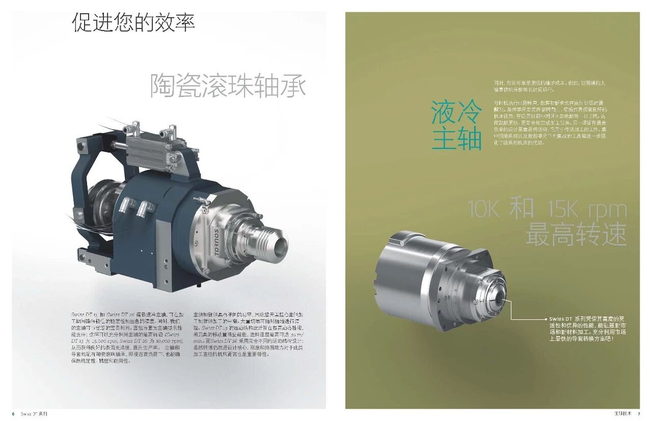 Swiss DT 系列瑞士型车床专业设计满足典型长 短车削工件的各种要求。该系列机床简单易 用,加工直径达 13 和 25.4 mm,可显著提高生 产效率。Swiss DT 系列采用先进的技术和高效的五轴运动结构,是所有车削和铣削加工的理想之选。