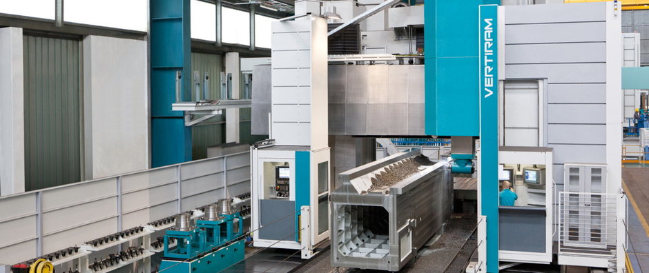 ●多种刀库选项极大地提高了Vertiram龙门加工中心的生产效率:链式刀库,安装在立柱侧面,容量为60到140个刀位;模块化矩阵式刀库,安装在地面上,具有容量大、占地小的特点;落地矩阵式刀库,配备机械手,可与X轴平行移动